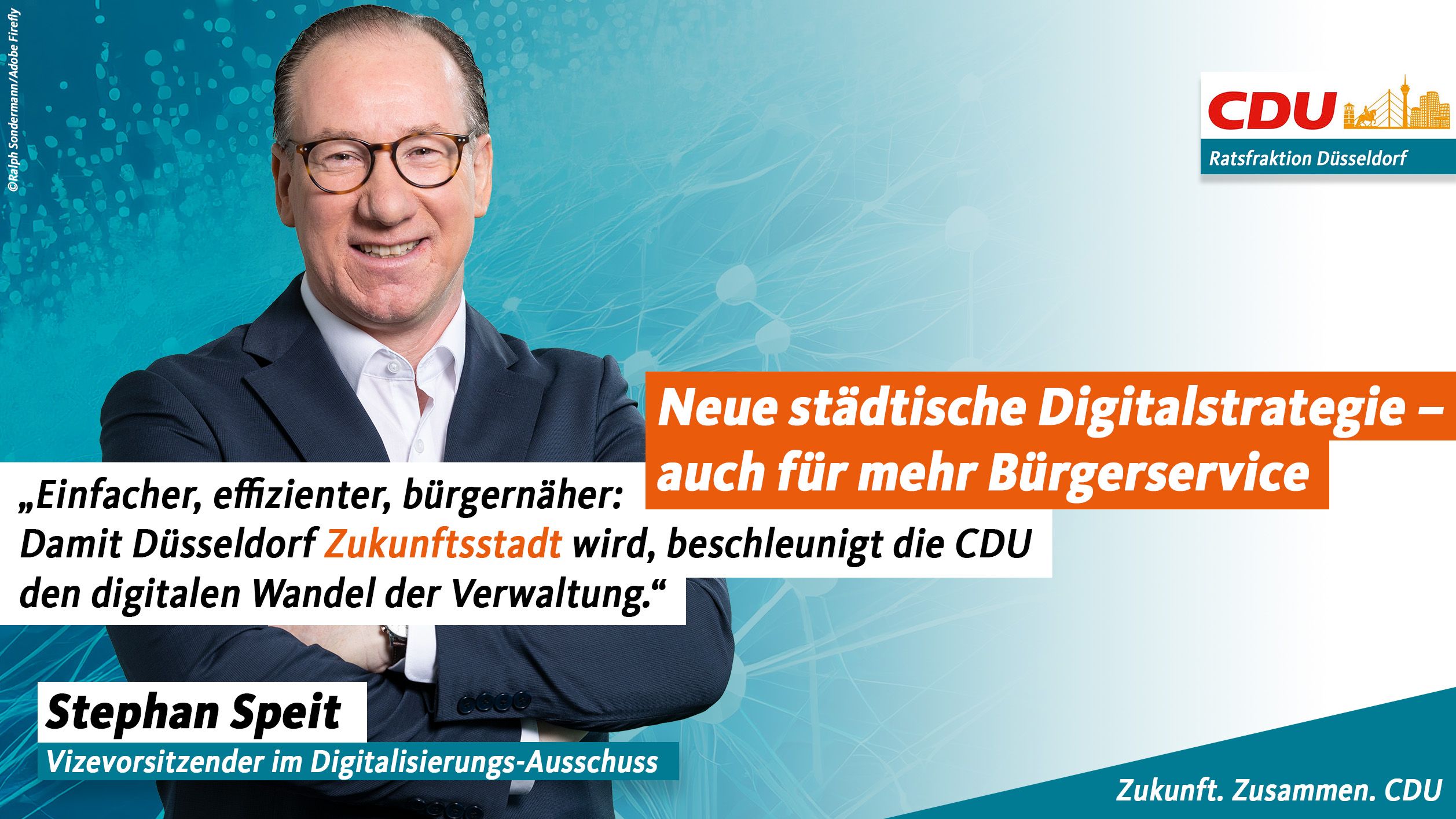 Die neue Digitalstrategie kombiniert Innovationskraft, Fortschrittlichkeit und Bürgernähe. Sie ist ein zentraler Baustein für die Zukunftsstadt Düsseldorf. Bei der Umsetzung hat das Team der Verwaltung unsere volle und feste Unterstützung.“